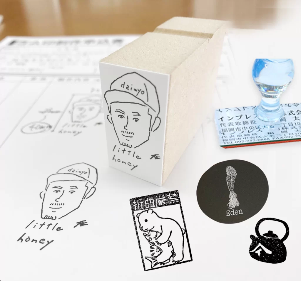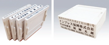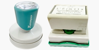 インクが浸透しているのでスタンプ台が不要で連続捺印でき、住所の宛名書きなどに最適です。文字以外にもロゴやイラストなどいろんなデザインで作れます。