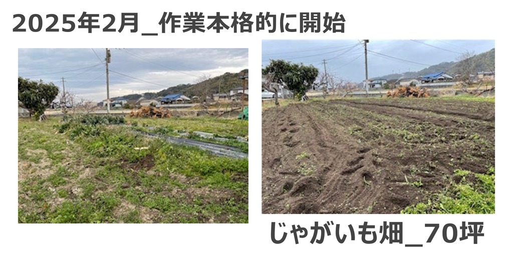 福岡県嘉穂郡にて、ジャガイモ畑(およそ70坪)とぶどう畑(およそ180坪)という、荒れ地からの再生をスタート。