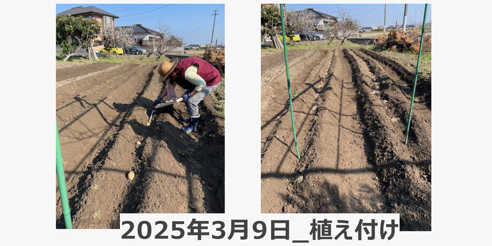 まだ寒さを感じる3月9日、用意していたジャガイモの種芋を植え付けるため、数人が集まりました。
