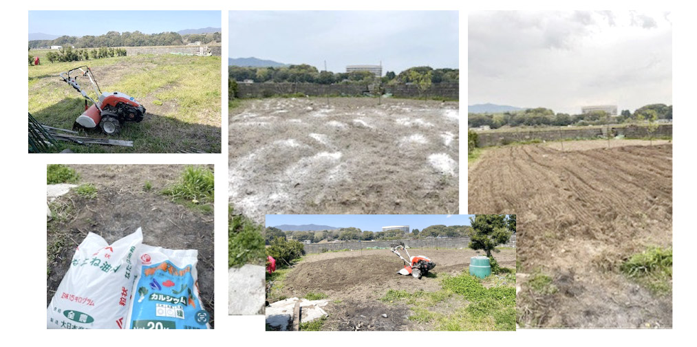 耕運機「ダッタ号」で全体を耕し、そのまま約2週間寝かせて豊かな土壌作りから始めました。