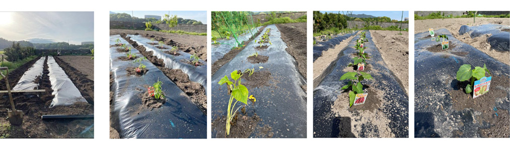 サツマイモ苗40本を2回に分けて植え、さらにパプリカ、茄子、胡瓜、ピーマン、オクラ、大玉トマト、スイカ、南瓜、コロタンメロンまで――夏野菜のラインナップが揃いました。