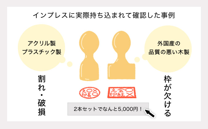 とくに、耐久性のないアクリル製やプラスチック製の安価な印鑑では、数回の使用で欠けたり割れたりすることも。